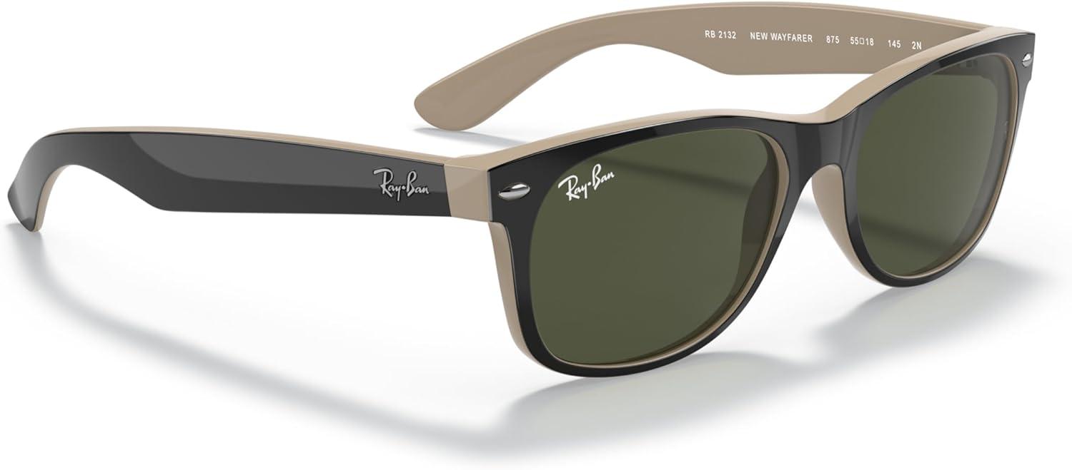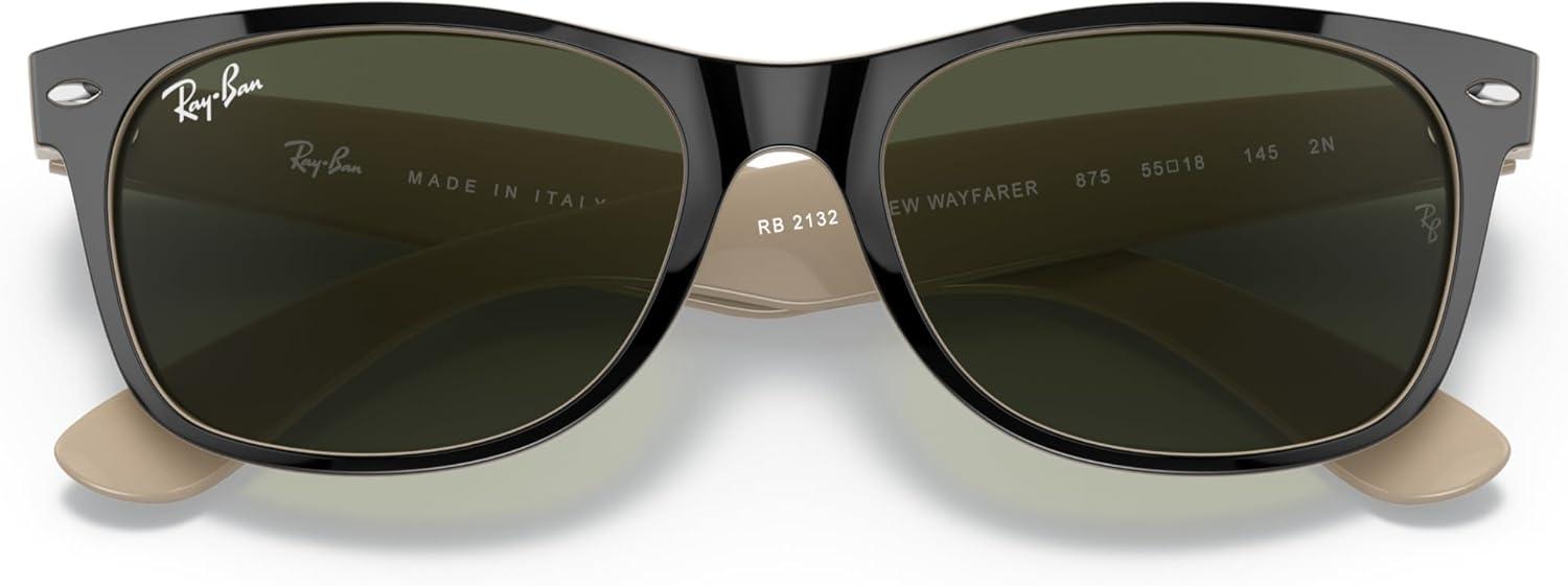 Ray-Ban RB2132 New Wayfarer Square(Black on Beige/G-15 Green)