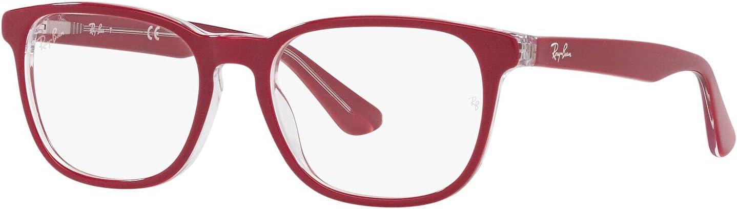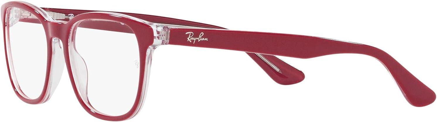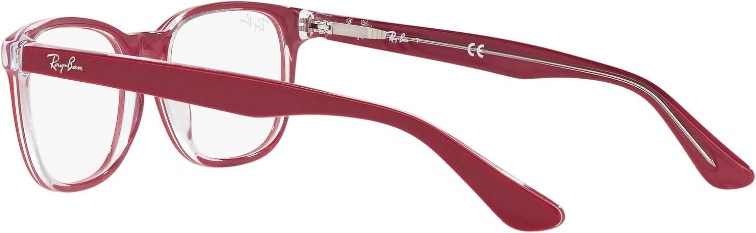 Ray-Ban unisex-child Ry1592 Square Prescription Eyeglass Frames(Red on Transparent/Demo Lens)